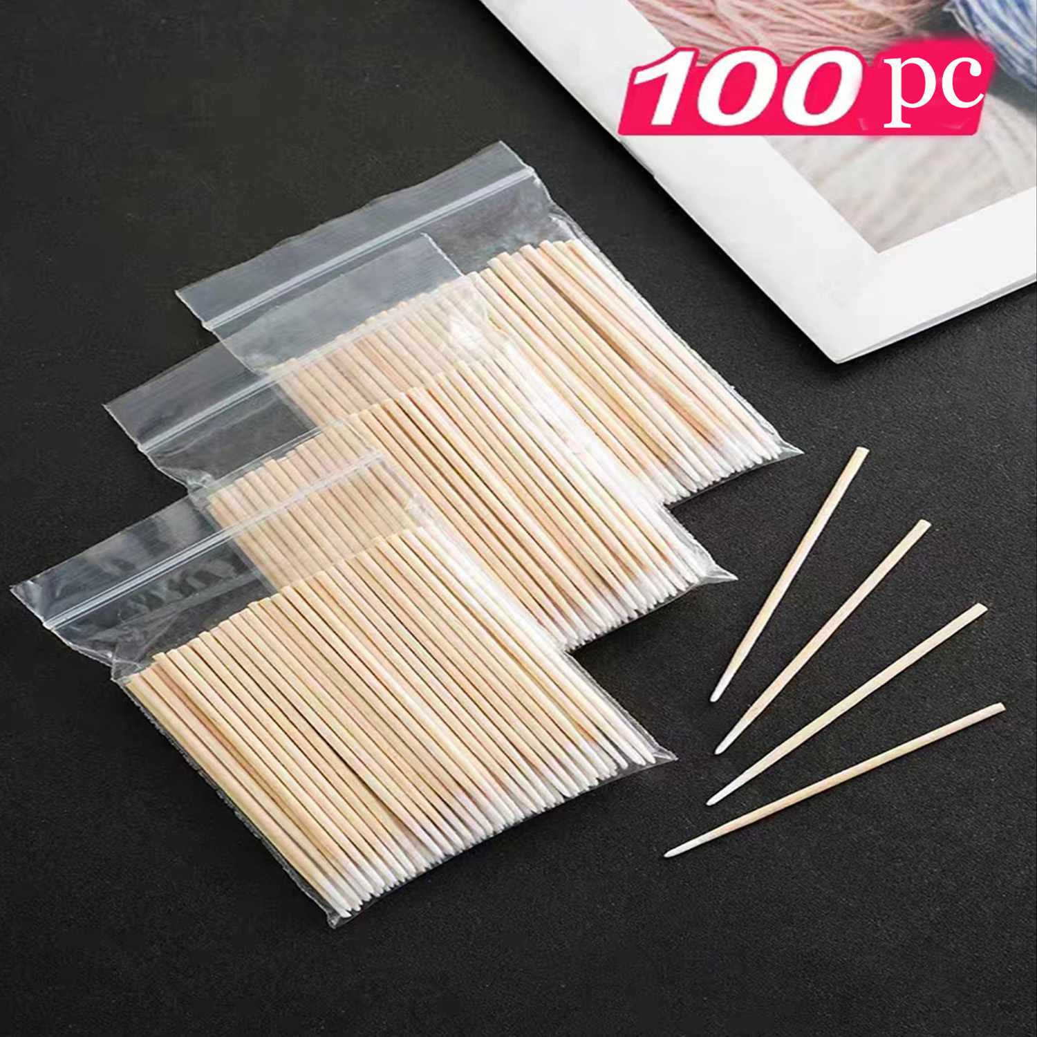 100pcs Double Side Wood Cotton Swab Microbrush Eyelash Sticks Cleaning Swabs Nails Ear Toothpicks Cosmetic Eye Lash Glue Removing Tools