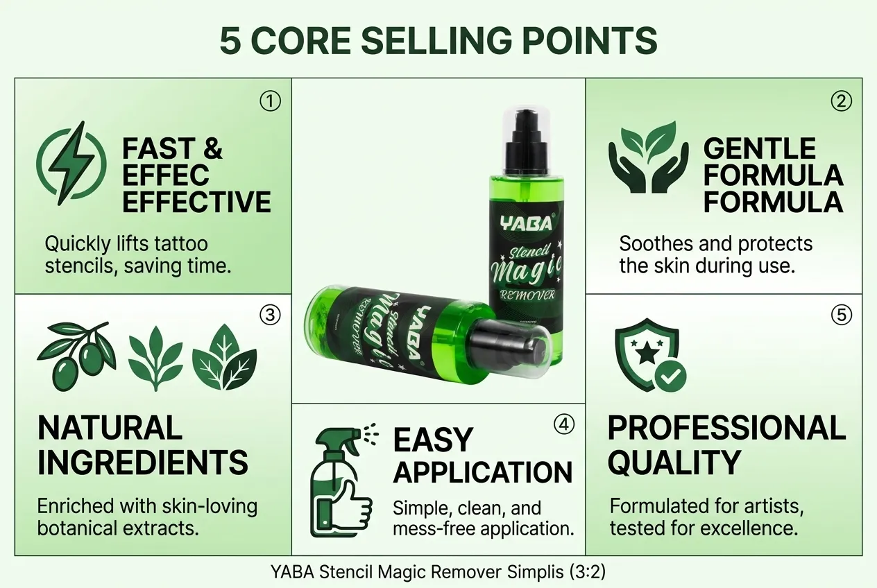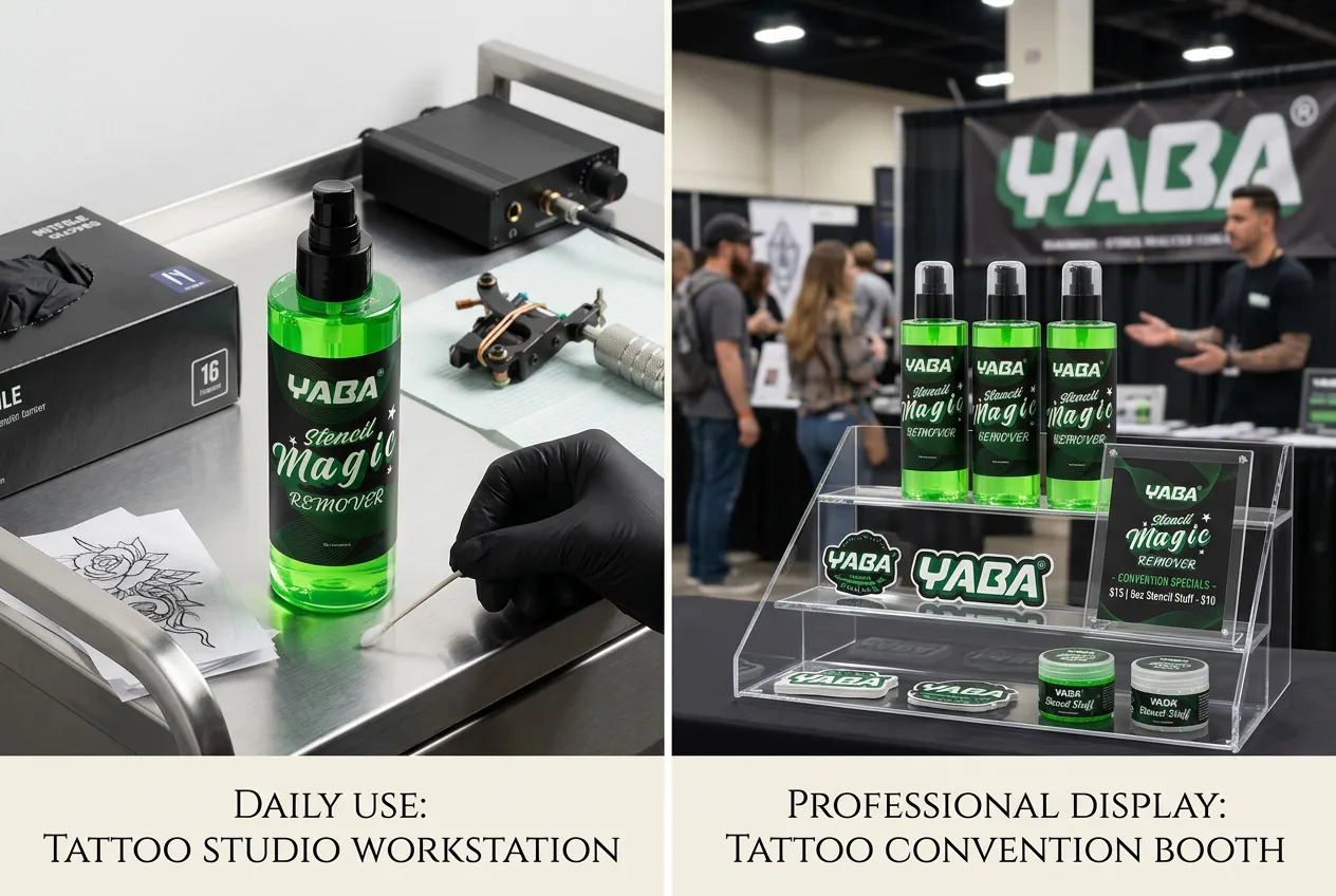 Easily wipe away unwanted stencils with Yaba Tattoo Stencil Remover, the ultimate solution for clean skin prep. This powerful tattoo stencil remover effectively removes even the most stubborn stencil marks without irritation. Designed for professional tattoo artists, this remover ensures a smooth, residue-free surface, allowing for precise designs. Made with skin-friendly ingredients, itโs gentle yet effective. Keep your workspace clean and your artwork flawless with Yaba Tattoo Stencil Remover, a must-have for every tattoo studio.