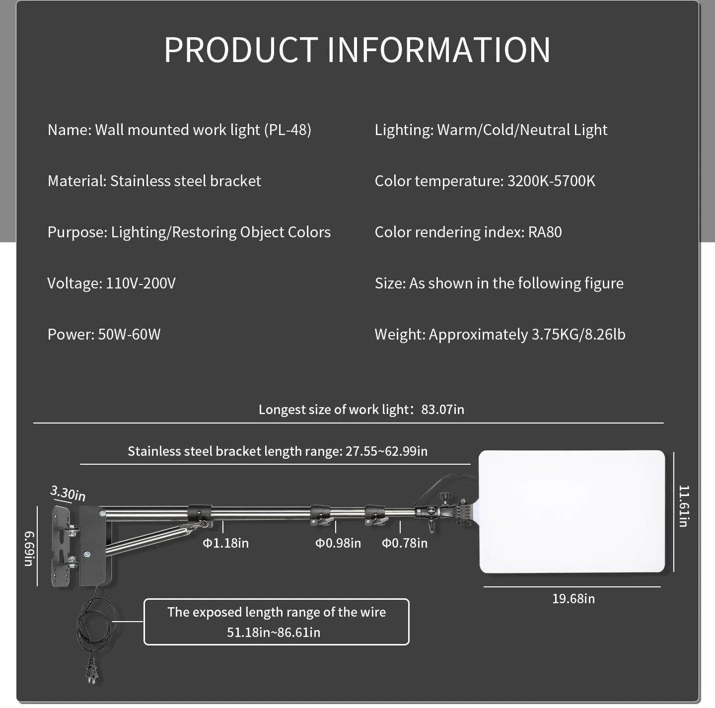 Yaba Tattoo Supply PL-48 Large Panel Telescoping Tattoo Wall Light